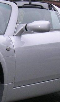 Descrizione visiva di un servizio di digitalizzazione, stampa, primerizzazione e verniciatura per un supporto per specchietto retrovisore.